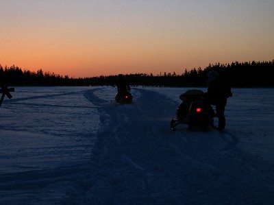 saisimme kelkan kuntoon. Meille tuli ajamiseen n. tunnin tauko, kun