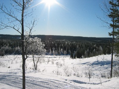 sillä taas se tutustui Kainuun koivuihin. Syötteeltä ajoimme Ranuan kautta