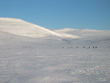 puolelle ja tarkoituksena oli mennä Jäämeren rantaan asti. Lumen puute