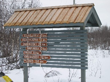 kulkee tien vartta pitkin Karesuvannon kautta Muonioon.